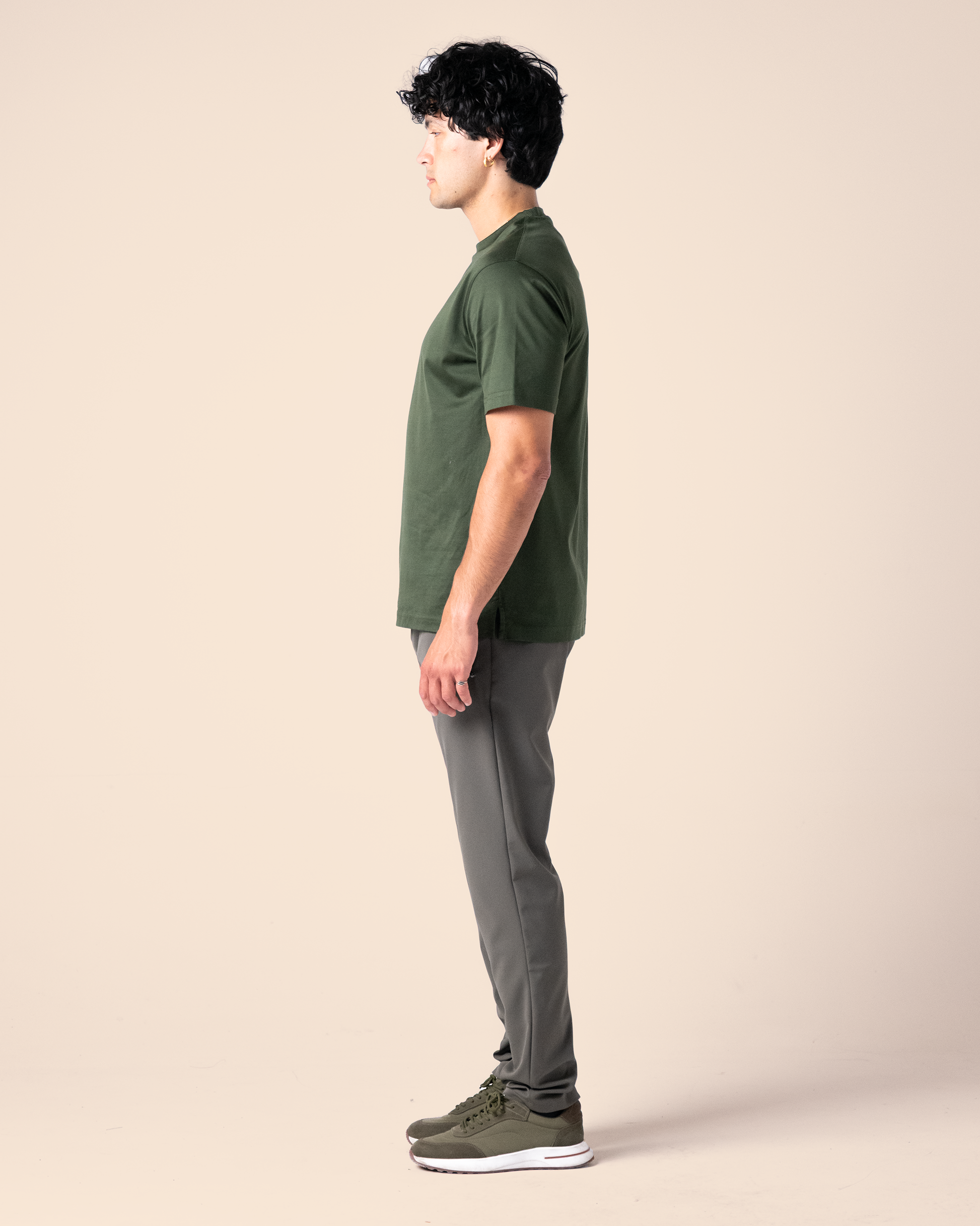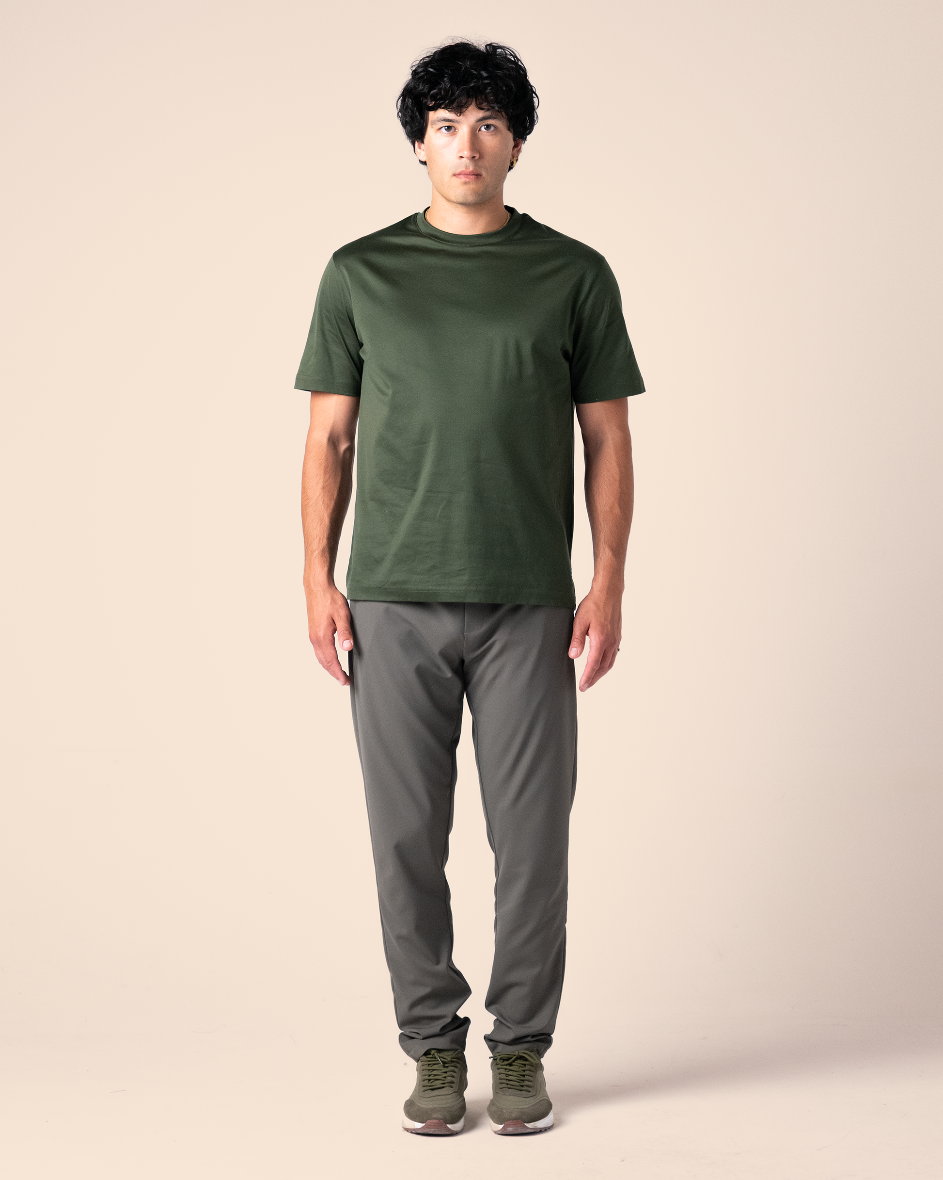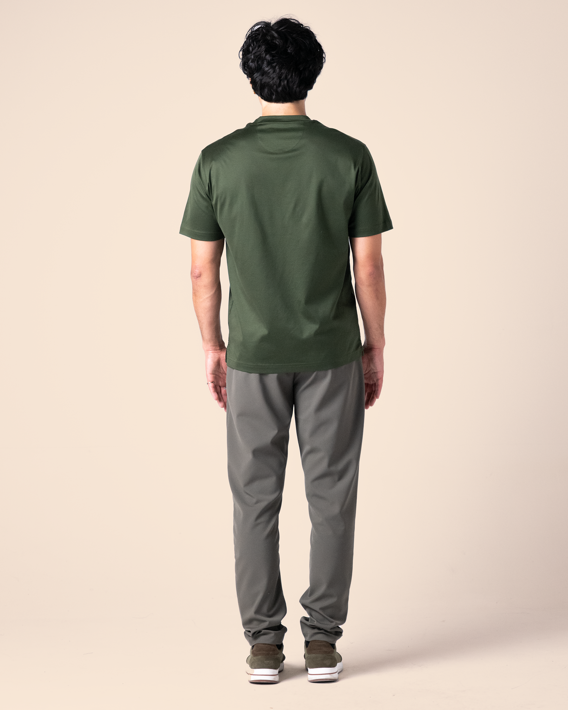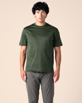 Experience the Mediterranean luxury with this high-quality green mercerized T-shirt made from Egyptian Supima cotton, known for its exceptional softness and natural shine effect. Designed for both comfort and style, this durable tee offers a refined look that stands the test of time. Perfect for a sophisticated wardrobe.