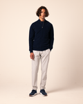 Pirloni’s full-zip merino navy wool sweater is crafted from the finest wool sourced from the mountains of Mongolia. Exceptionally soft and breathable, the high-quality wool provides warmth without bulk. The full zipper, paired with luxurious metal hardware, enhances both style and function. The wide collar adds a touch of refined elegance, completing this sweater’s seamless blend of Mediterranean luxury and expert craftsmanship.