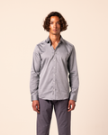 Crafted from the finest quality cotton, this grey blouse offers a flawless fit that contours to your body for a sleek, elegant silhouette. With a subtle silk-like sheen, it exudes sophistication while maintaining breathability and comfort. The tailored design of this shirt enhances your natural shape, making it a timeless piece of luxury and style.