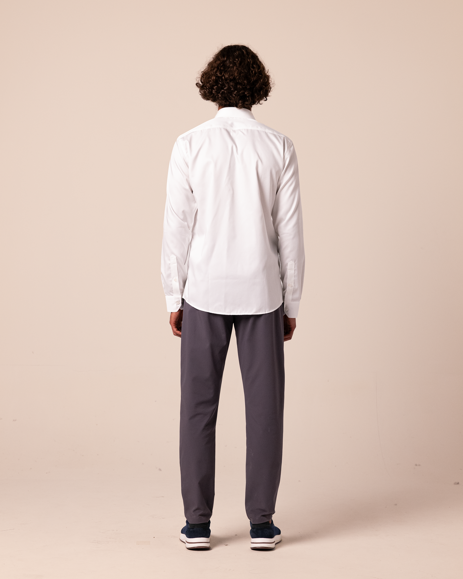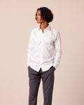 Crafted from the finest quality cotton, this white blouse offers a flawless fit that contours to your body for a sleek, elegant silhouette. With a subtle silk-like sheen, it exudes sophistication while maintaining breathability and comfort. The tailored design of this shirt enhances your natural shape, making it a timeless piece of luxury and style.