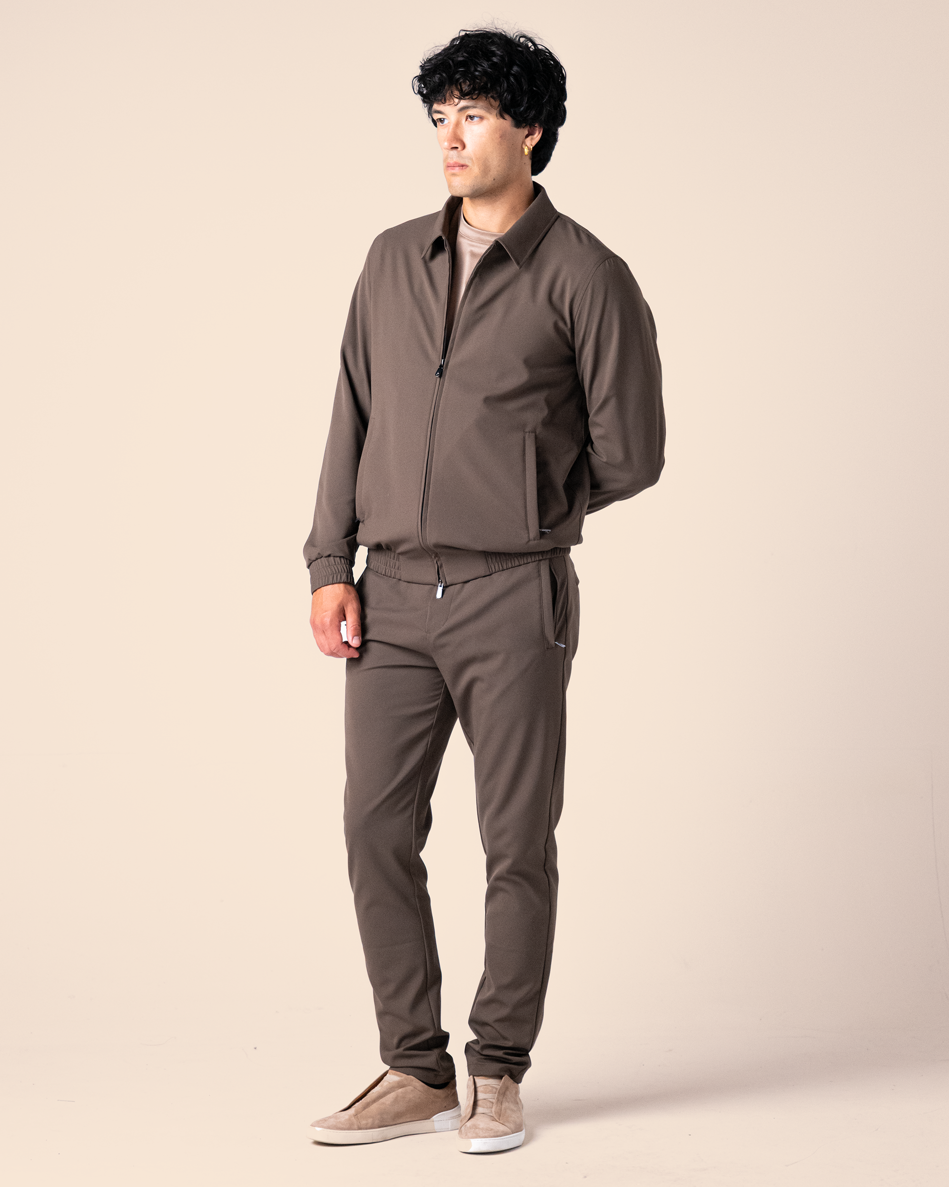 The Pirloni high-quality tech suit is crafted from premium technical fabric, embodying the essence of Mediterranean luxury. With its sleek lines and refined finish, it offers the sophistication of a tailored suit rather than typical loungewear. The suit is finished with a high-quality branded metal zipper, while all pockets are equipped with zippers. The trousers feature a refined elastic waistband for added comfort and style.
